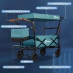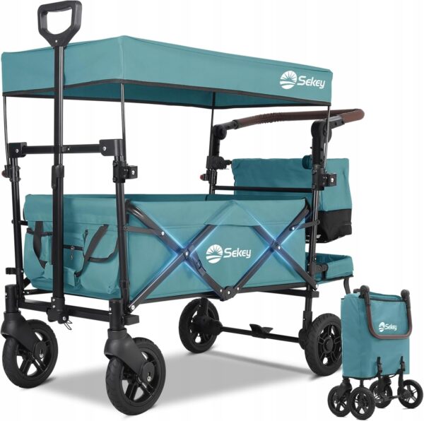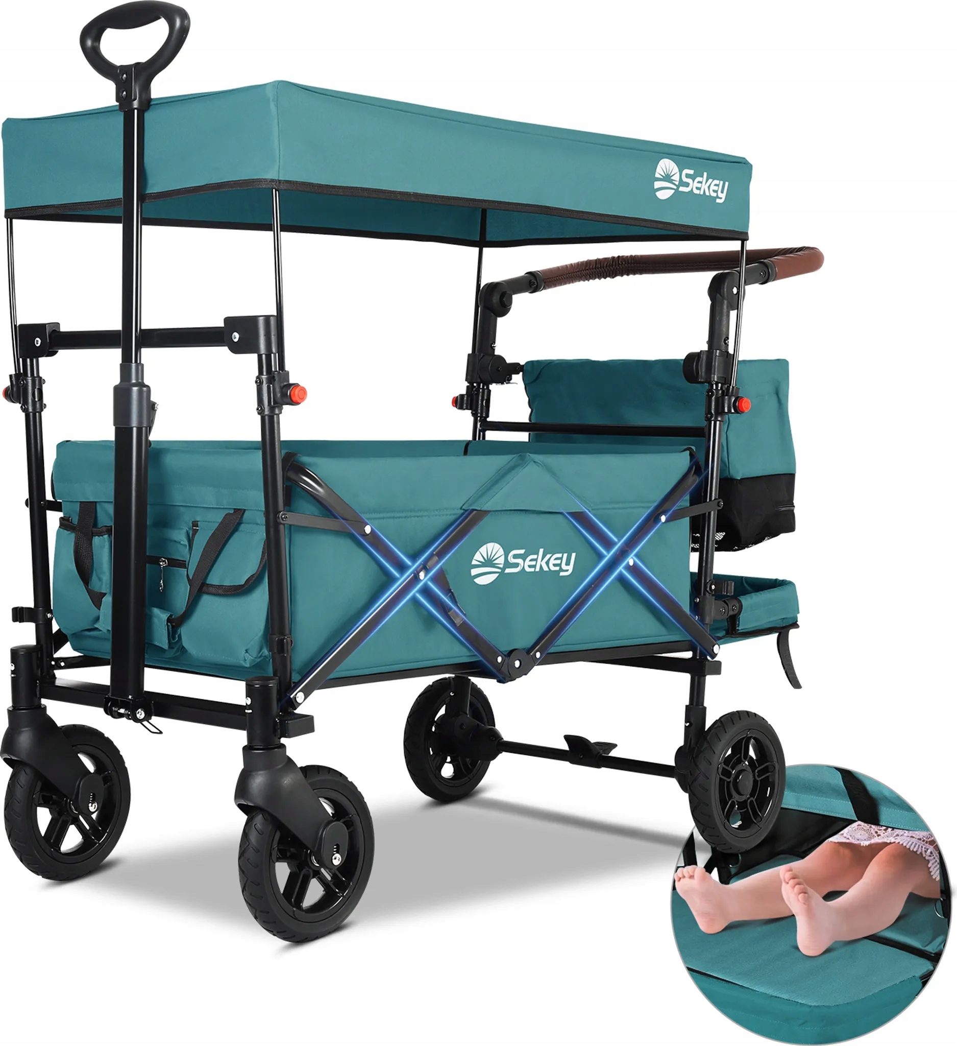 Wózek składany dla dzieci Sekey 150kg z dachem pasy turkusowy