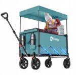 Składany wózek transportowy Sekey z dachem to wszechstronne i bezpieczne rozwiązanie do codziennego użytku oraz aktywności na świeżym powietrzu. Sprawdzi się podczas spacerów wyjazdów rodzinnych zakupów campingu oraz transportu różnych ładunków.