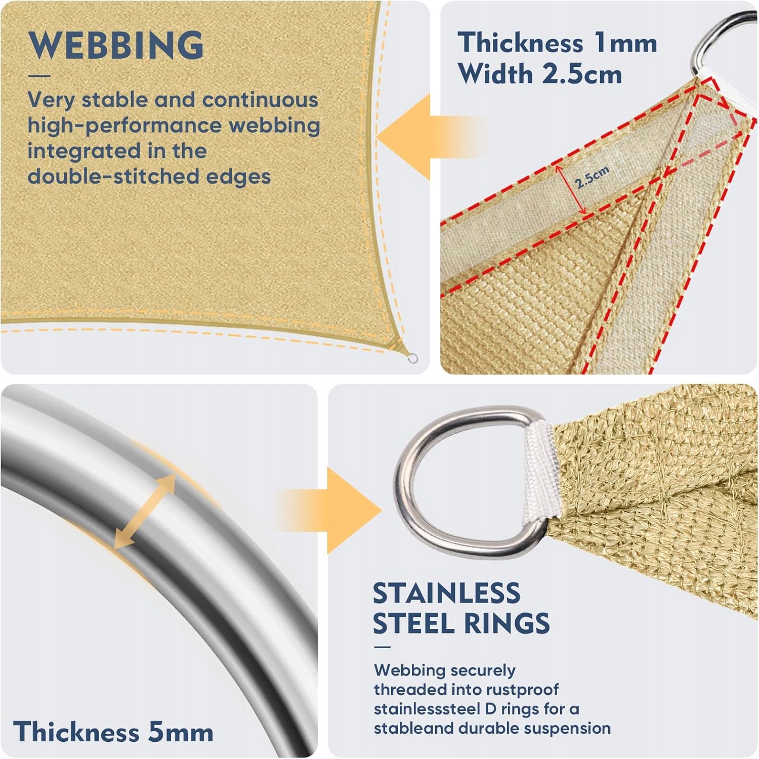 ✅ ODPORNY NA ROZDARCIA, SOLIDNY – Tkanina jest niezwykle trwała, łatwa do czyszczenia i odporna na pleśń. Tkanina o wysokiej wytrzymałości, klamry D ze stali nierdzewnej w rogach z ciasnymi szwami sprawiają, że żagiel jest bardziej odporny na rozdarcie.