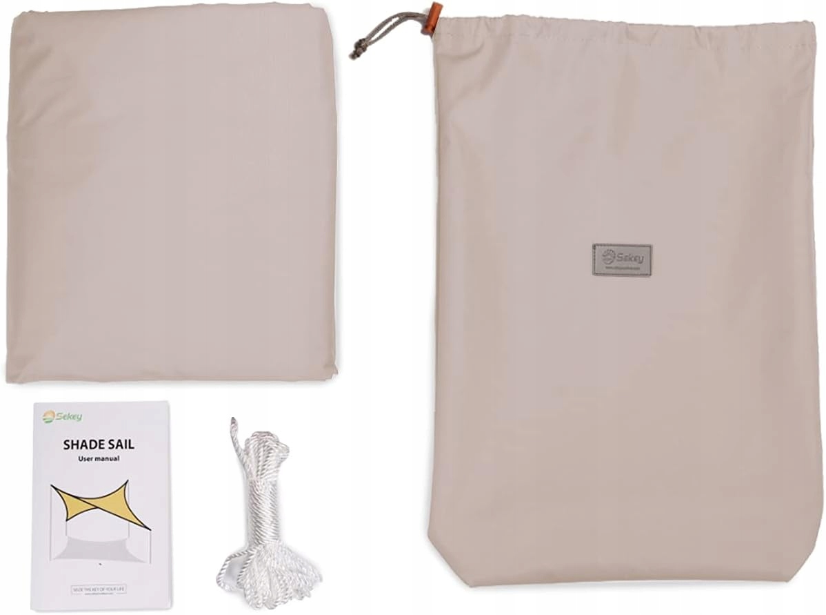 Sekey Żagiel przeciwsłoneczny 3,6×3,6×3,6 m beżowy, PES Poliester z zestawem montażowym