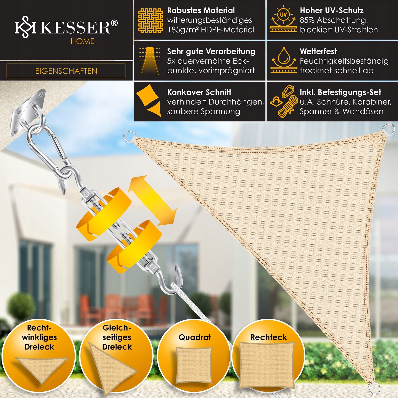 KESSER Żagiel Przeciwsłoneczny HDPE 3x3x3 m – Ochrona UV 85%, Wodoodporny, Łatwy Montaż