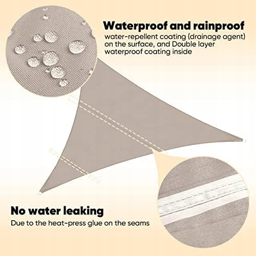 ✅ Przeciwsłoneczny żagiel w 100% wykonany z wysokiej jakości i gęstej tkaniny poliestrowej, wodoodporny materiał na powierzchni, podwójna powłoka PU wewnątrz, trwała i bezpieczna. Jest odporny na światło, wodoodporny, rozdarcia, odporny na warunki atmosferyczne i wolny od pleśni i plam.