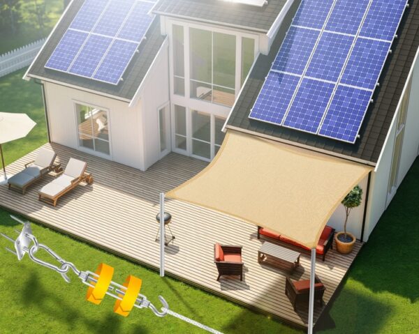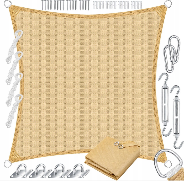 ✅ Żagiel może być montowany na drzewach, barierkach, ścianach czy słupach za pomocą dołączonych linek montażowych. Istnieje także możliwość zastosowania haków ściennych, karabińczyków oraz napinaczy. Rekomendujemy nachylenie żagla o około 20%, aby uniknąć gromadzenia się wody deszczowej.