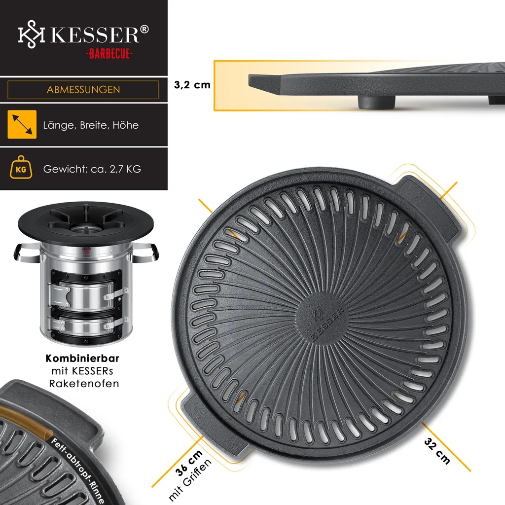 ✅ Patelnia grillowa KESSER® to niezastąpione akcesorium dla wszystkich miłośników gotowania na świeżym powietrzu oraz tradycyjnej kuchni ogniskowej. Wykonana z wysokiej jakości żeliwa, zapewnia doskonałą retencję i równomierne rozprowadzanie ciepła, co pozwala przygotować potrawy z intensywnym, grillowym smakiem i charakterystycznym efektem przypieczenia.