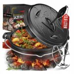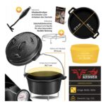KESSER® Żeliwny garnek do piekarnika holenderskiego z pokrywką do grillowania na zewnątrz i wewnątrz Wielofunkcyjny zestaw do gotowania – Patelnia do grilla – Zapiekanka dla 8-14 osób z nóżkami 13,6 l