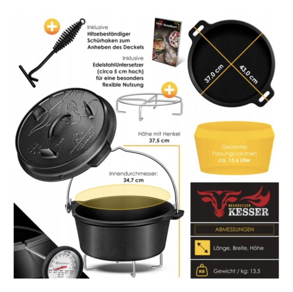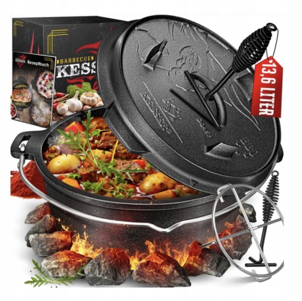 Żeliwny garnek na grill dla 14-20 osób z podstawką KESSER Kociołek 13,6 l