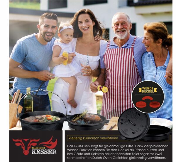 To nie tylko garnek do gotowania, ale prawdziwie wielofunkcyjny talent dla współczesnych mistrzów gotowania i grillowania. Od bułek cynamonowych, przez chleb i pizzę, po gulasze i azjatyckie fondue – ten holenderski piekarnik od KESSER to niezbędny element każdej kuchni i grillowej sceny.