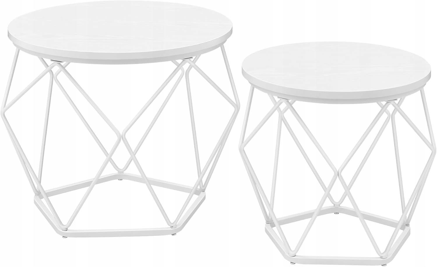 Nowoczesny zestaw 2 stolików kawowych VASAGLE to stylowe i funkcjonalne rozwiązanie do salonu, sypialni lub strefy relaksu. Okrągłe blaty w białym kolorze oraz geometryczna stalowa podstawa tworzą elegancki, loftowy charakter, który przyciąga wzrok.