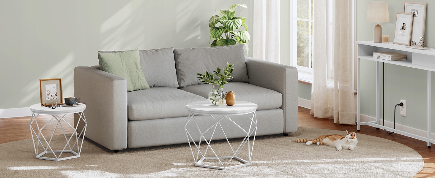 Stoliki świetnie sprawdzą się jako miejsce na kawę, dekoracje, rośliny doniczkowe czy laptopa do pracy. Możesz ustawić je razem, tworząc spójną aranżację, lub rozdzielić – jeden przy sofie, drugi w sypialni.