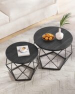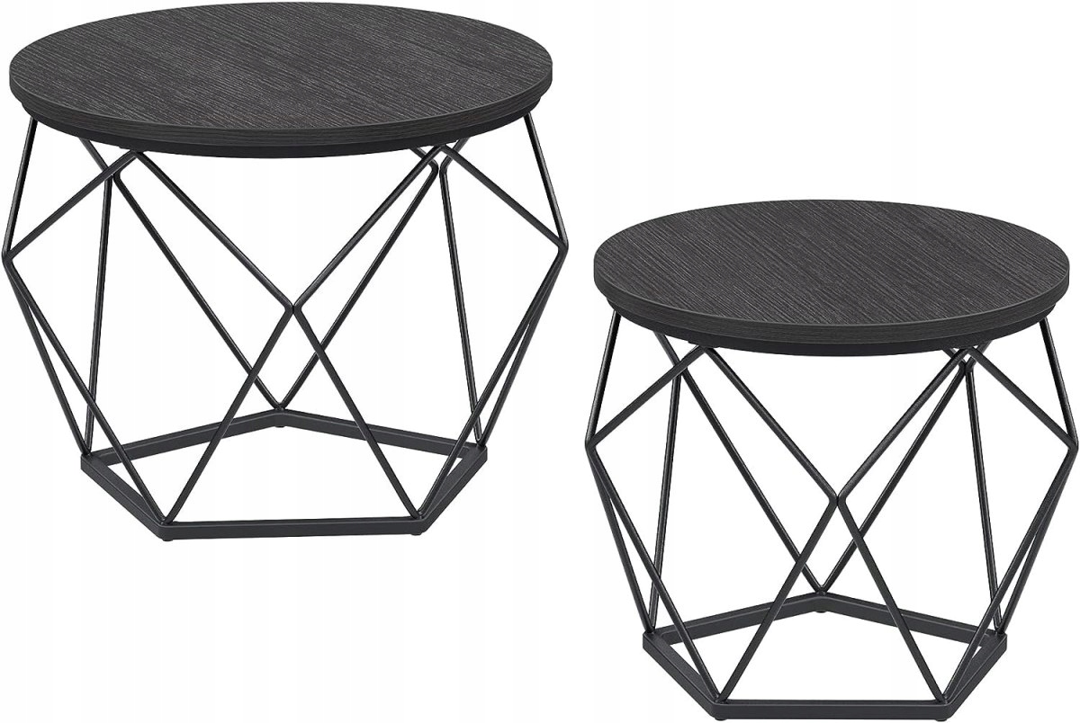 Zestaw 2 stolików kawowych okrągłe czarne loft VASAGLE