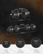 Wszechstronny zestaw hantli SONGMICS 20 kg pozwala trenować w domu i na siłowni. Dzięki dodatkowej sztandze łączącej możesz łatwo przekształcić hantle w sztangę, zwiększając zakres ćwiczeń i komfort treningu.