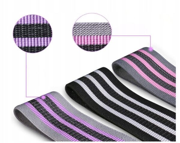 Taśmy wykonane są z grubej, wzmocnionej tkaniny z wewnętrzną warstwą antypoślizgową, dzięki czemu nie zsuwają się ani nie rolują podczas ćwiczeń. Dodatkowe przeszycia zwiększają trwałość.